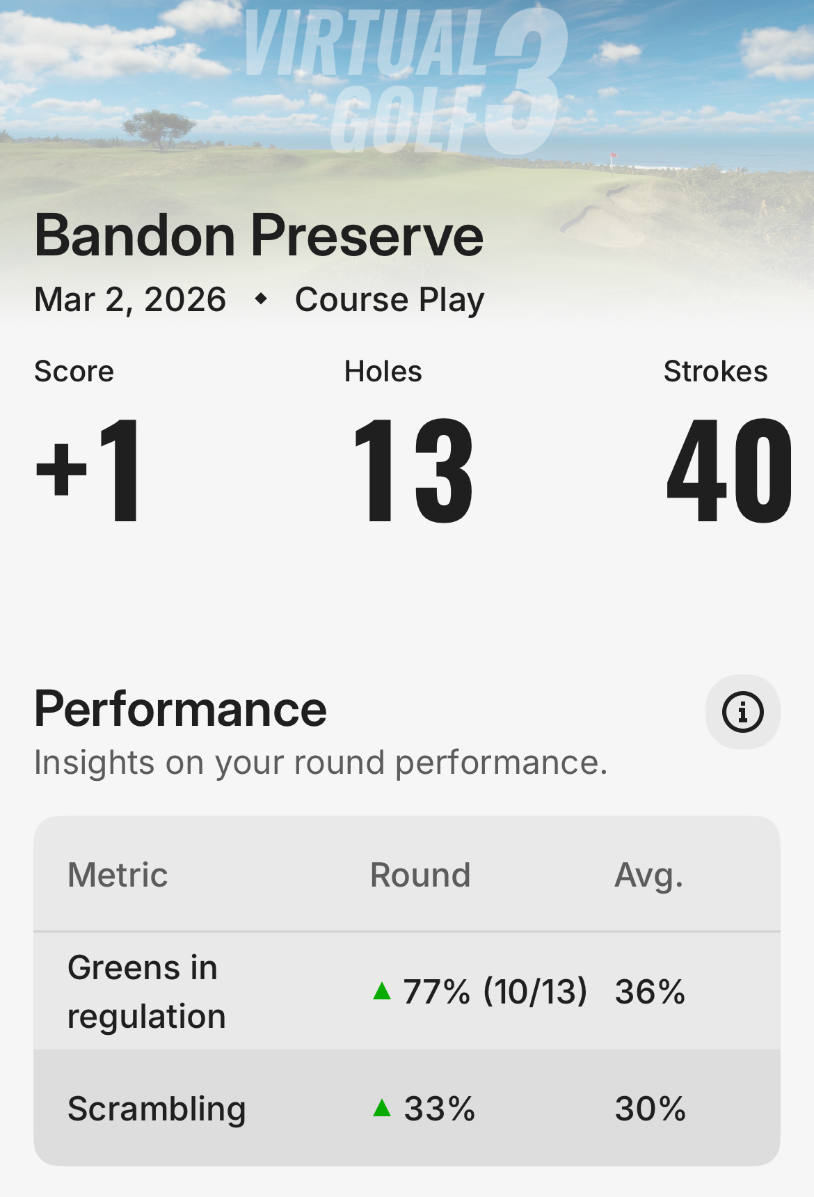Bandon Trails - The third course added in 2005, a par 71. For some reason, this one always gives me the most trouble on the sim. Looking at my stats, hole #8 is a problem for me. Hopefully we are able to put up a decent round to start off the weekend and get the confidence up.